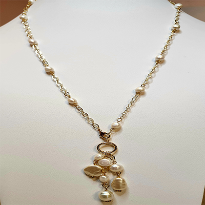 24" 14 K goldplated chain with freshwater pearls and removable pendant with pearls.